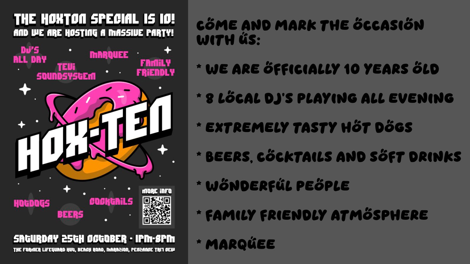 WE ARE 10! Come celebrate with us: Sat 25th Oct